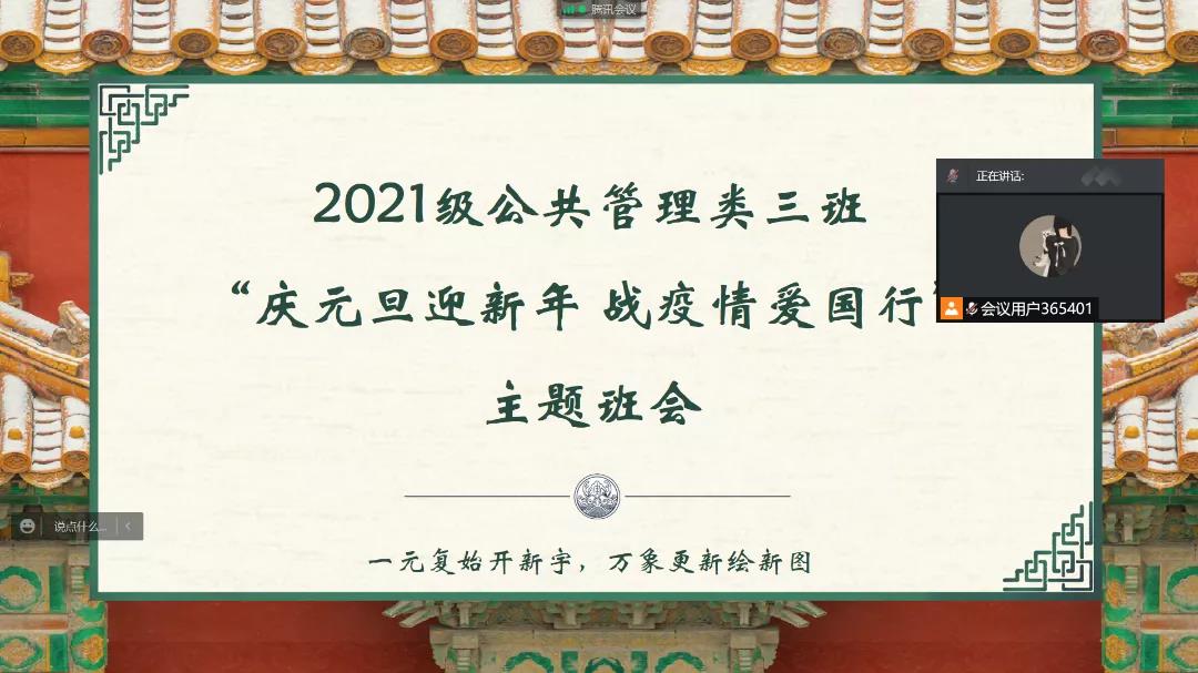 齐心战疫 展望未来 | 我院2021级公共管理类三班召开线上主题班会