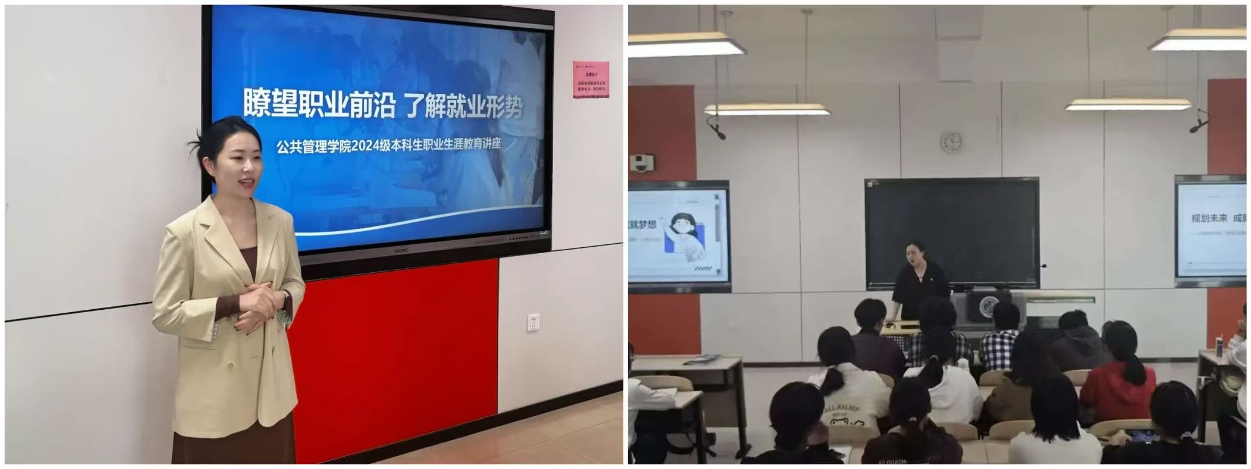 举办“我的职业规划榜样”主题分享会,具有丰富参赛经验的同学结合大赛目标和主导方向,对如何做好职业规划延申拓展至求职就业进行了经验分享,结合个人求职经历,详细分析了当下公共管理专业就业的跨学科趋势,建议同学们夯实专业基础,增强学习能力,加强社会实践,不断提高自身的岗位匹配度和求职竞争力,为同学们合理规划大学生活提供了宝贵经验;在保研经验分享会中,成功保研的高年级学子围绕学习成绩、科研竞赛、社会实践等多个维度,对保研历程中的宝贵经验与深刻感悟进行了慷慨分享,引导学生树立明确的学习导向;在联合国实习经验分享中,我院于2024年5月至8月在联合国总部实习的2020级行政管理专业本科生对自身在联合国实习时的挑战与收获进行了感悟分享,激励我院学子积极参与国际实习、培养国际视野。