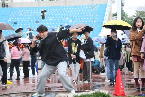 风雨中,同学们激情呐喊