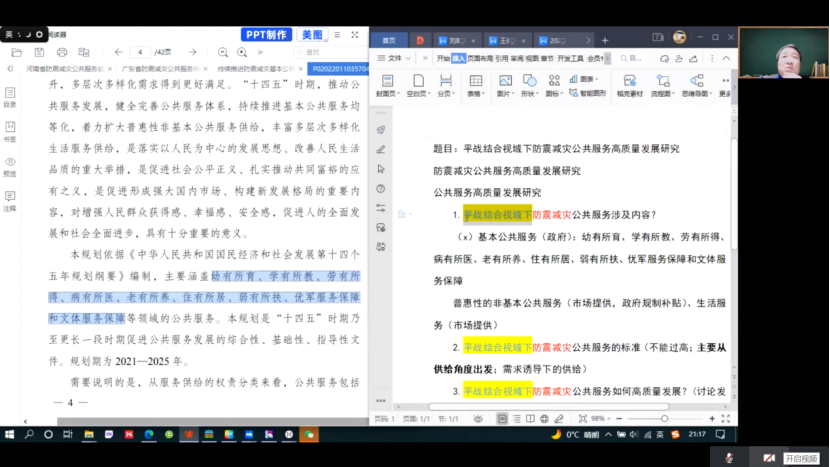 1月12日,西北大学应急管理学院的中国地震局2022年课题项目组在线举办了《平战结合视域下防震减灾公共服务高质量发展研究》的第一次项目推进会。项目研究团队就研究框架、政策挖掘、文献梳理、调研安排等进行了深入的讨论。