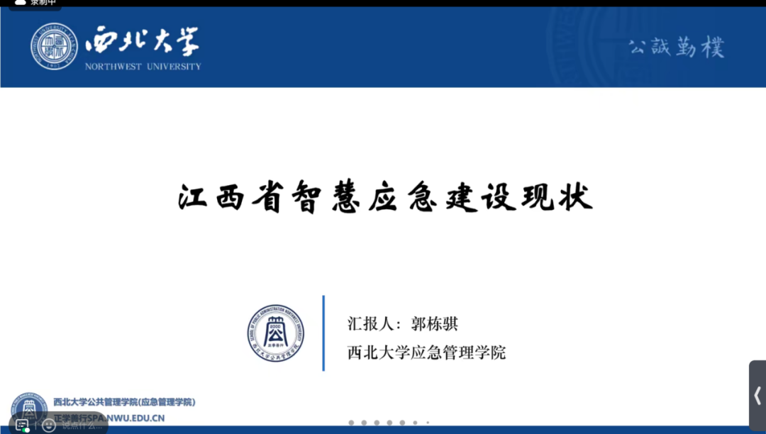 (西北大学应急管理学院智慧应急团队成员郭昭君作报告)