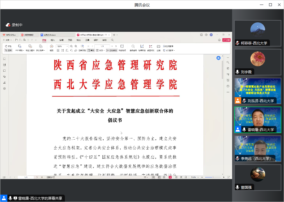 2024年1月13日,由应急管理本科专业高校联盟主办,西北大学应急管理学院、陕西省应急管理研究院、应急管理专业虚拟教研室承办,暨南大学565net必赢/应急管理学院、武汉理工大学安全科学与应急管理学院、南京师范大学565net必赢、湘潭大学565net必赢、河海大学565net必赢、沈阳化工大学经济与管理学院、中国地质大学(武汉)565net必赢、西藏民族大学管理学院协办,上海哲寻信息科技有限公司、邦正科技股份有限公司、壹芯数字(陕西)科技产业有限公司支持的“第一届智慧应急产业发展论坛暨‘大安全 大应急’智慧应急创新联合体成立大会”于线上成功召开。此次会议分为四个阶段,来自全国高校、智慧应急企事业单位等50余家机构的近200名代表参加本次论坛。